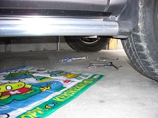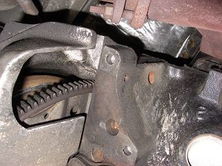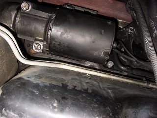 奥に見えるタイヤは前輪運転席側です。Cスターターを取り外した所。